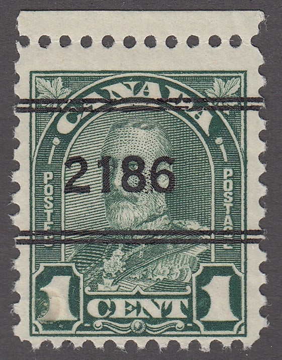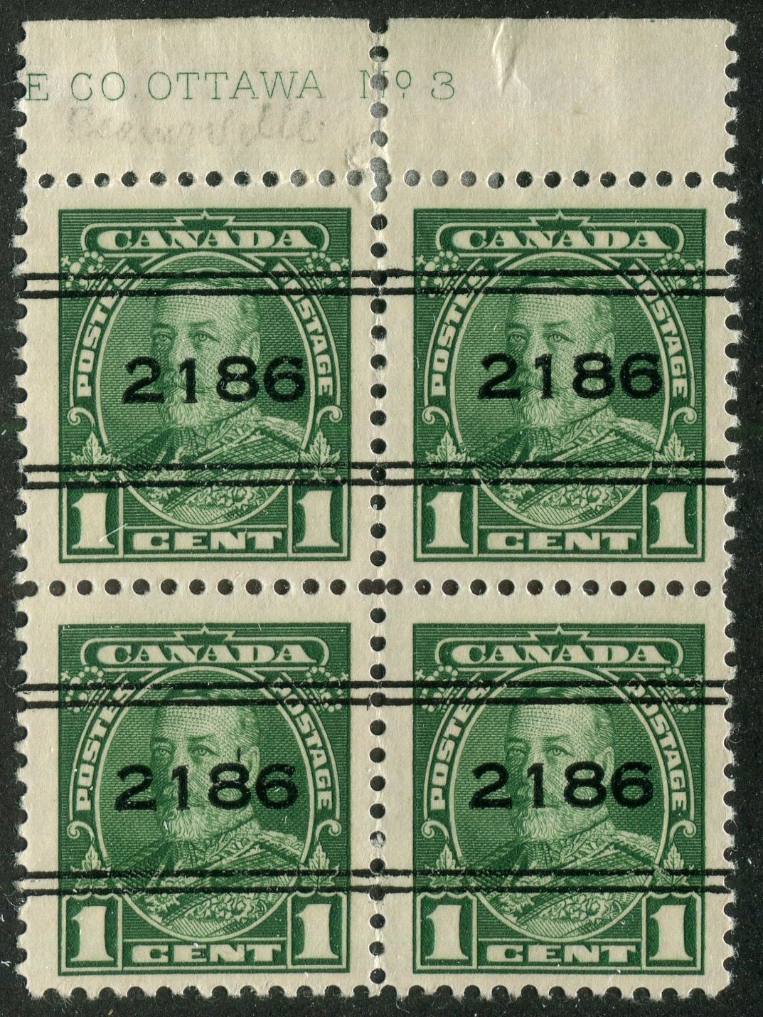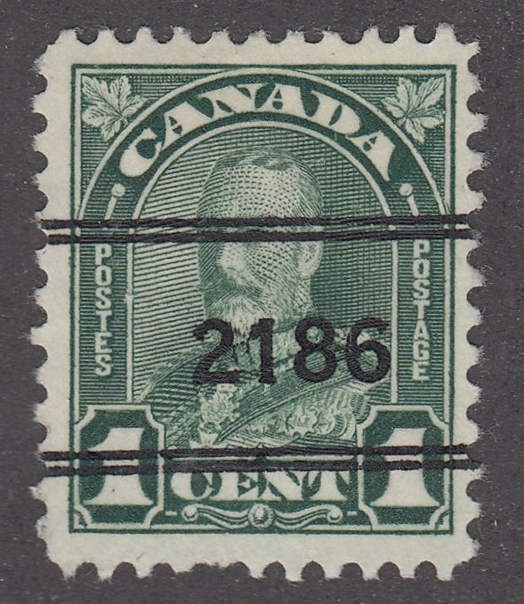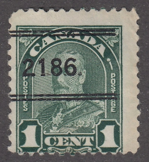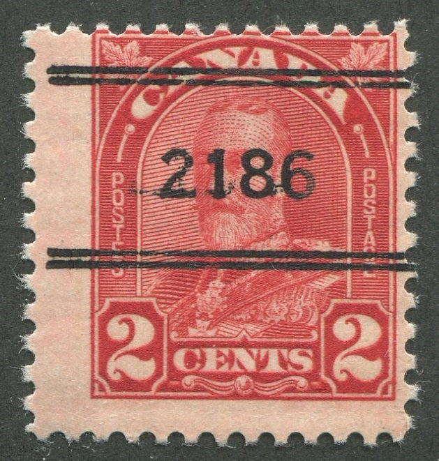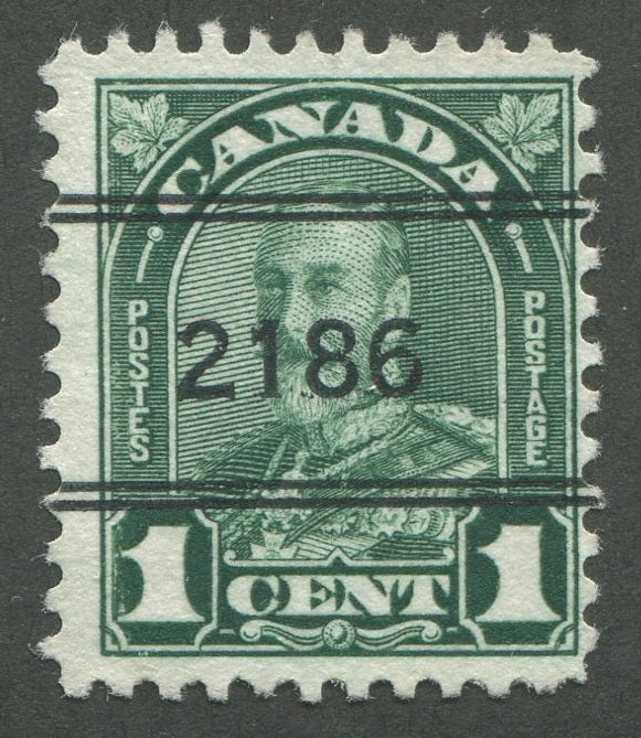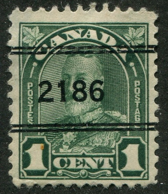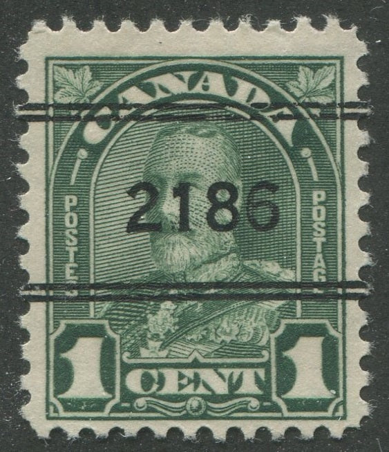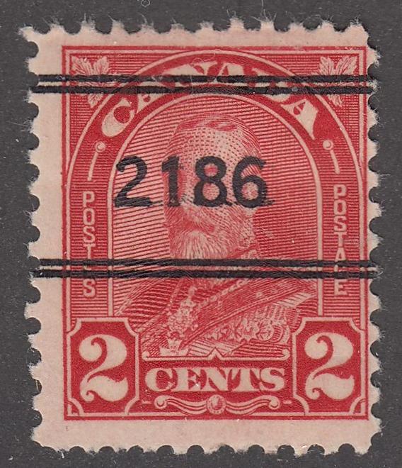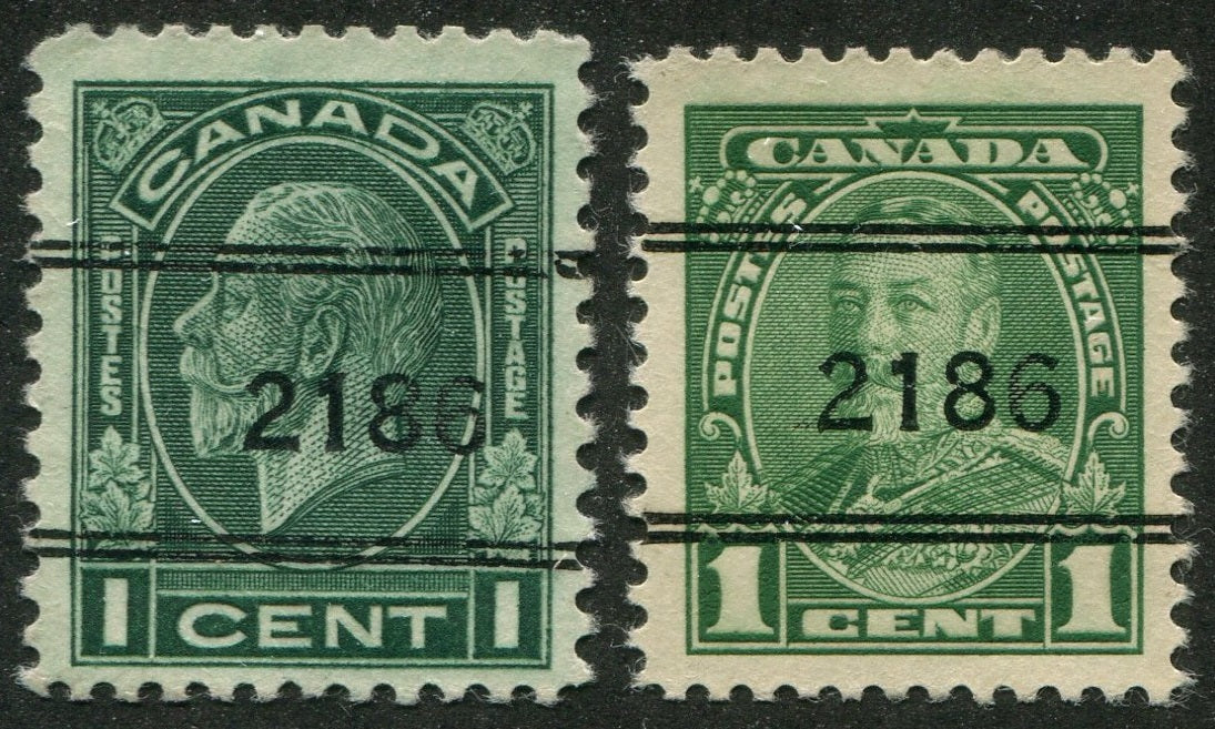 A precanceled stamp, or precancel for short, is a postage stamp that has been cancelled before being affixed to mail. These old Canadian stamps were typically used by mass mailers, who could save the postal system time and effort by prearranging to use the precancels, and delivering the stamped mail ready for sorting.