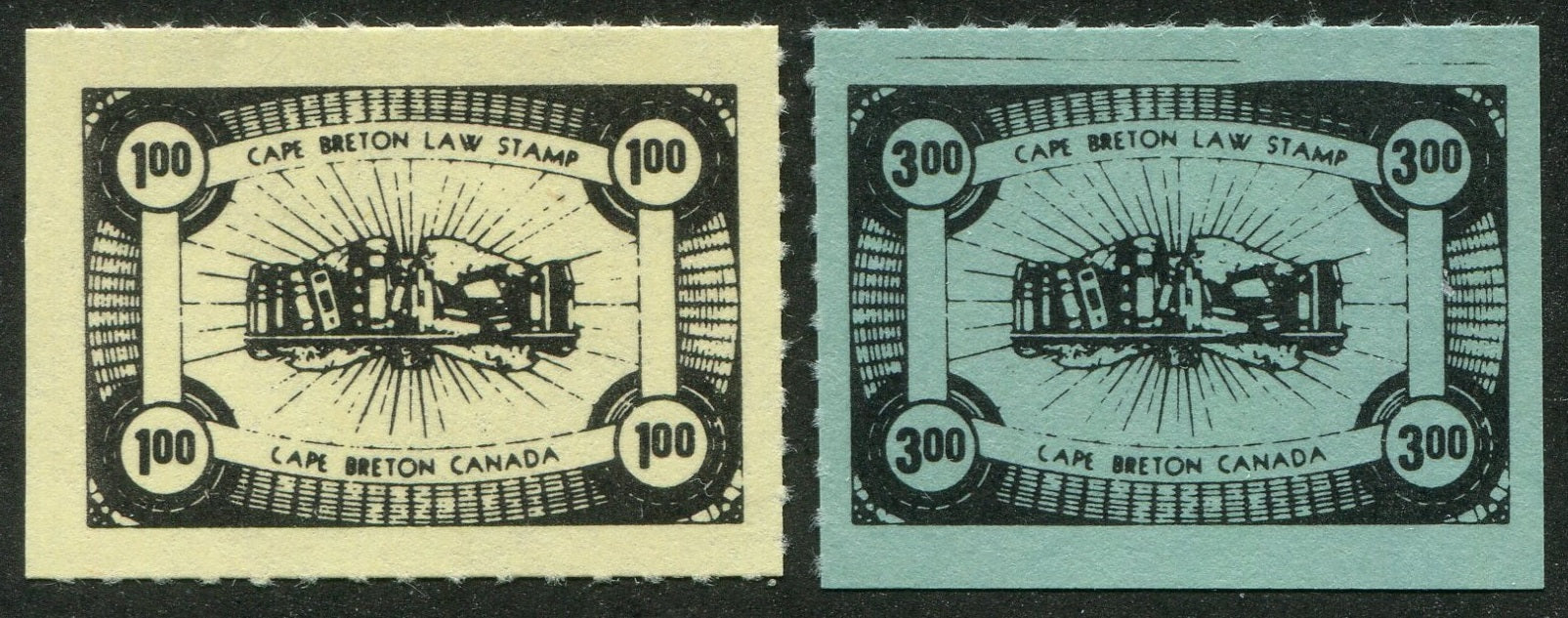 DESCRIPTION:$1 black on yellow paper, $3 black on turquoise green paper. NH.