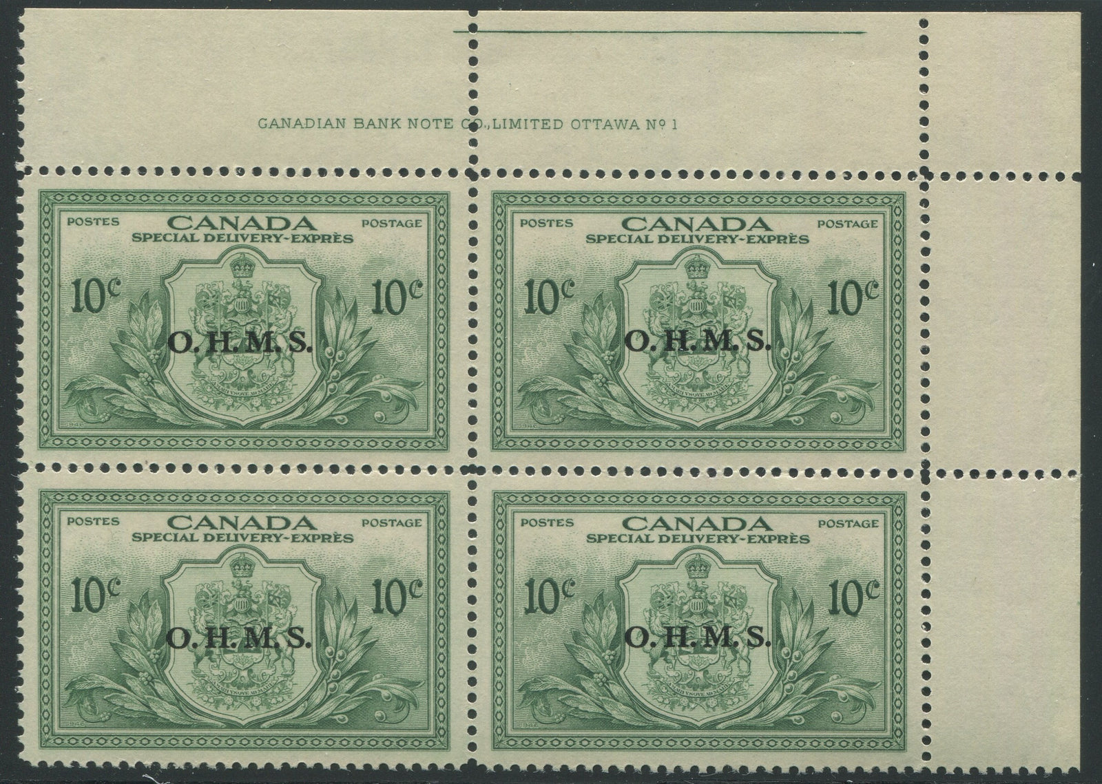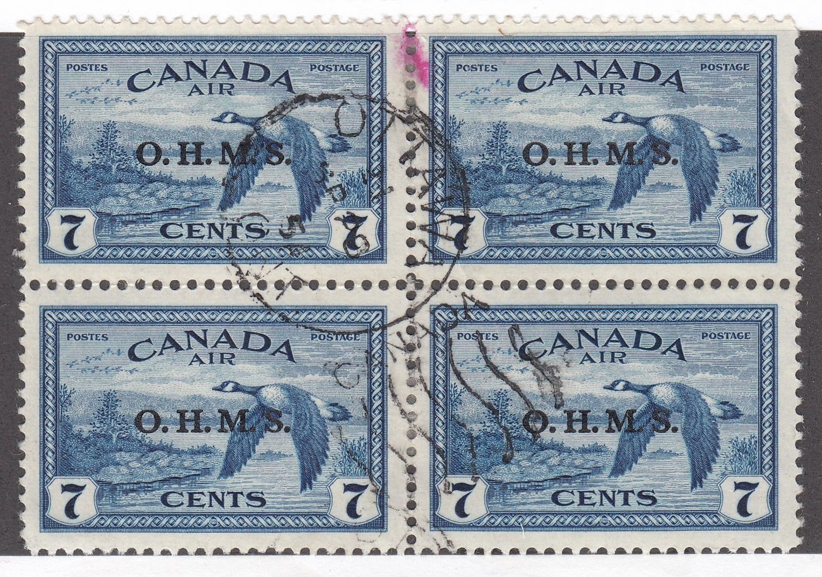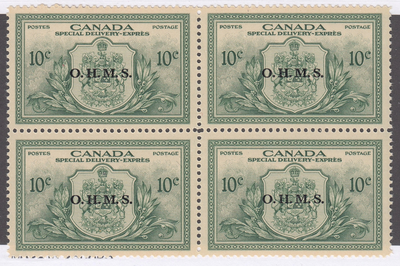 BOB stamps (short for Back of the Book) were special stamps issued for any specific purpose other than regular surface mail. These stamps are usually listed in the Unitrade catalogue with a specific letter preceding a number (for example: Canadian perforated 5-Hole OHMS items start with "OA"). This grouping includes Canadian stamps such Semi-Officials, Officials, War Tax, Registration, Special Delivery & Air Mail.