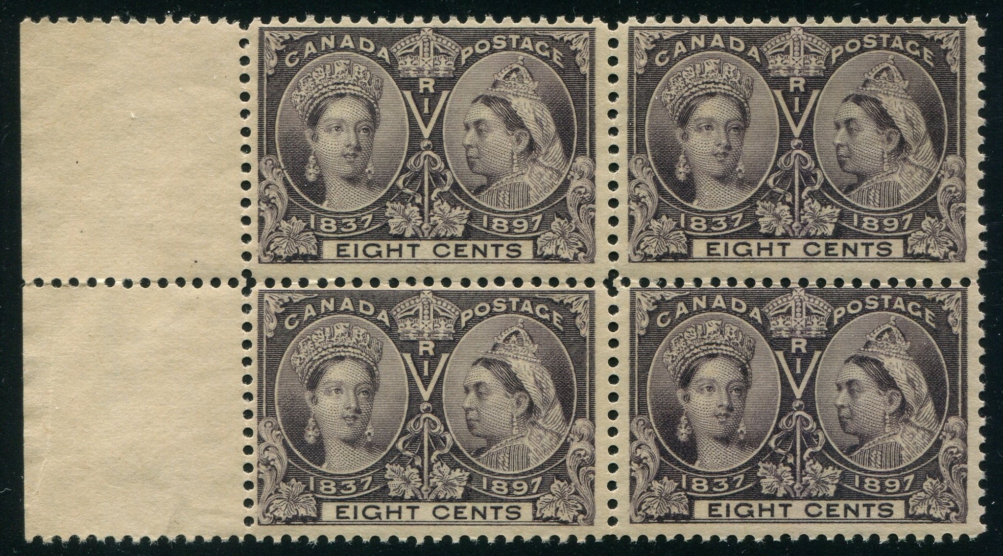 DESCRIPTION: 8c dark violet, sheet margin block of 4. NH. *A couple light gum wrinkles*.