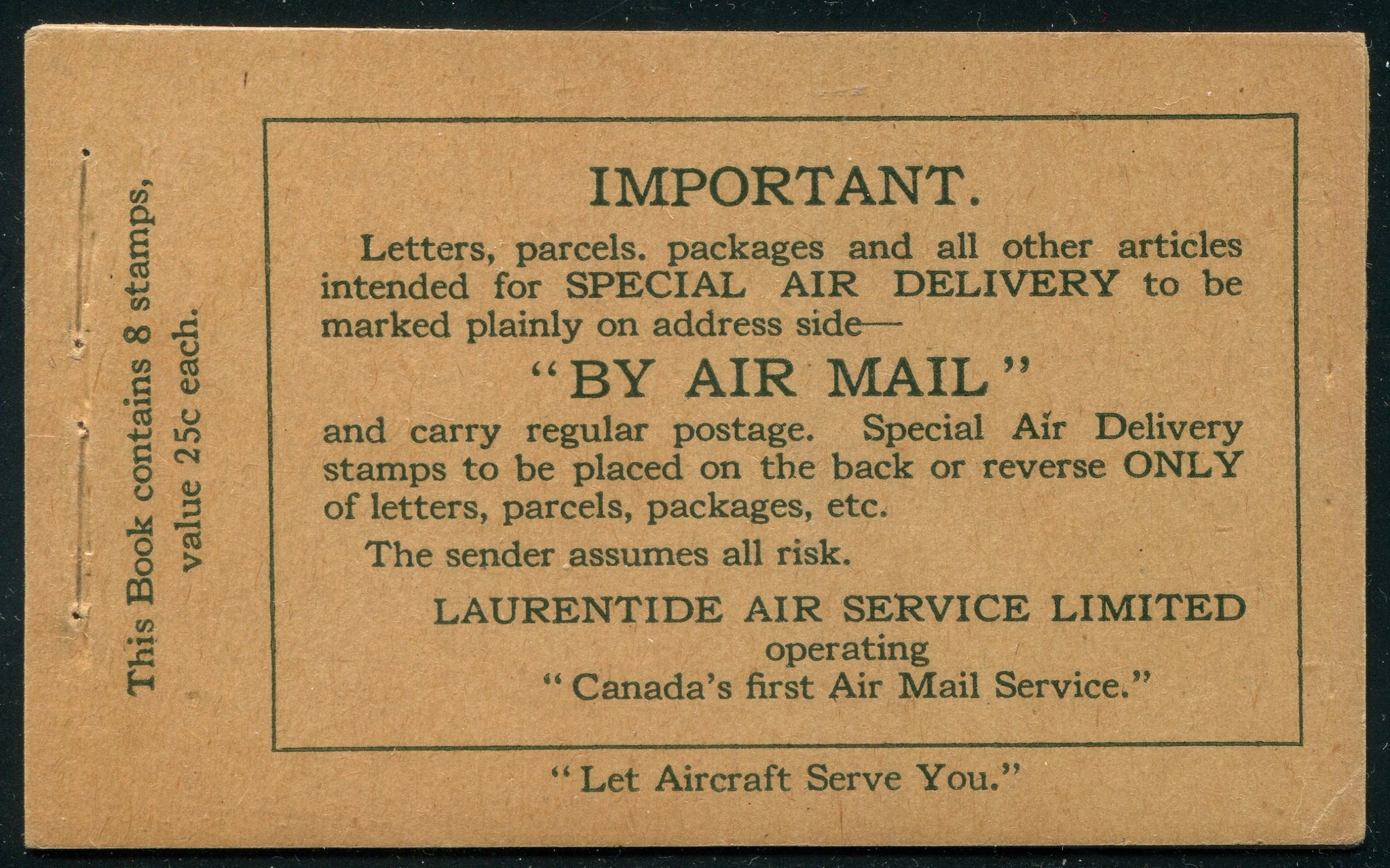 DESCRIPTION: Second issue (25c) green, empty booklet (no panes), front cover green, no printing on back. Rare.