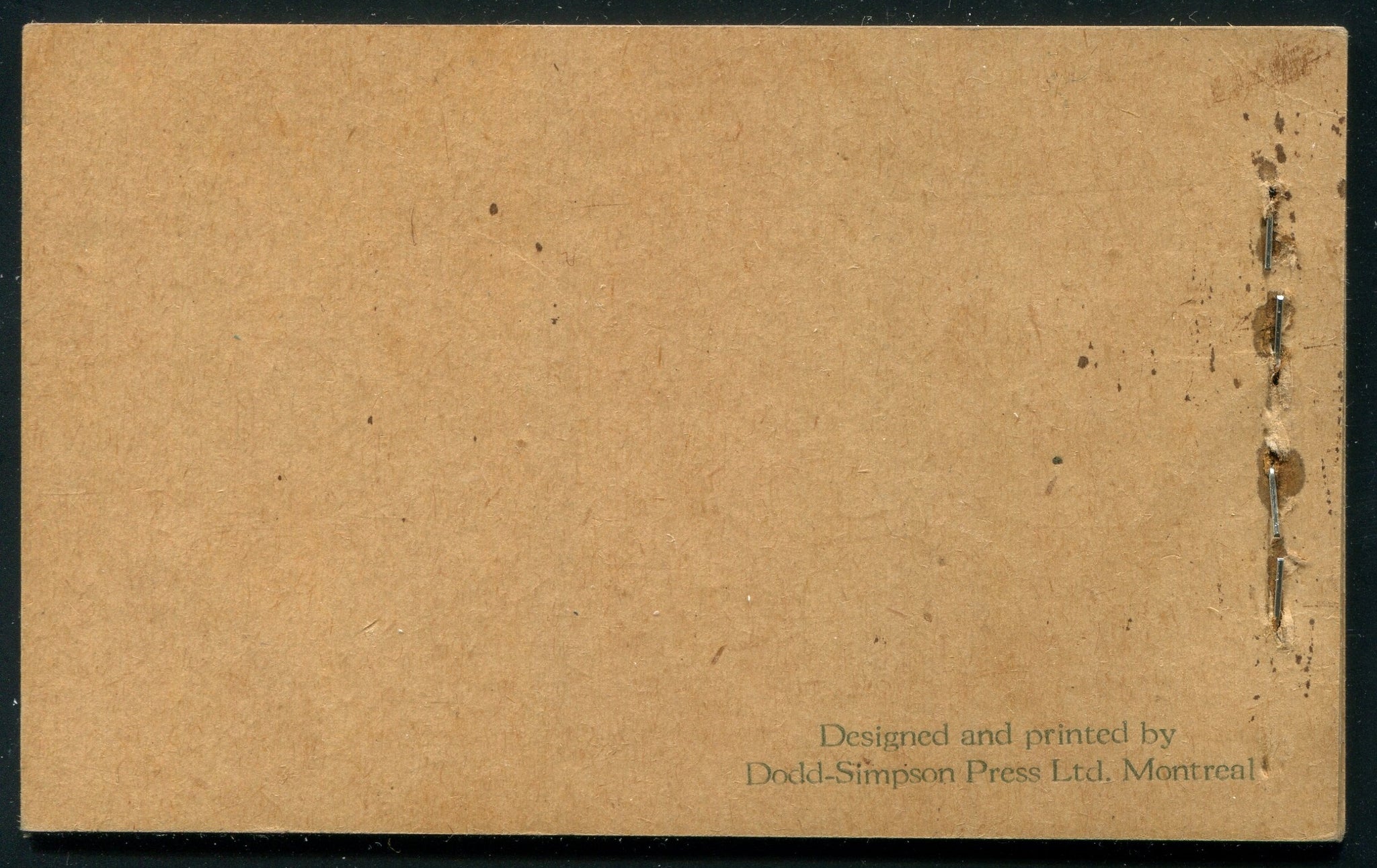 DESCRIPTION: Second issue (25c) green, complete booklet of 4 panes, front cover green, with back cover printed. Covers not creased. Panes NH. Light staining/soiling on front cover near staples.