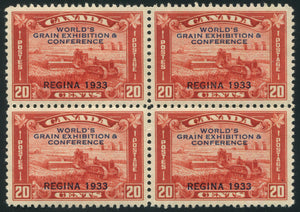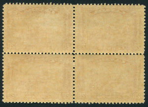 DESCRIPTION: 20c brown red, block of 4 with lower left stamp showing the broken 'X' variety (pos. 19). NH. *Lightly disturbed gum*.