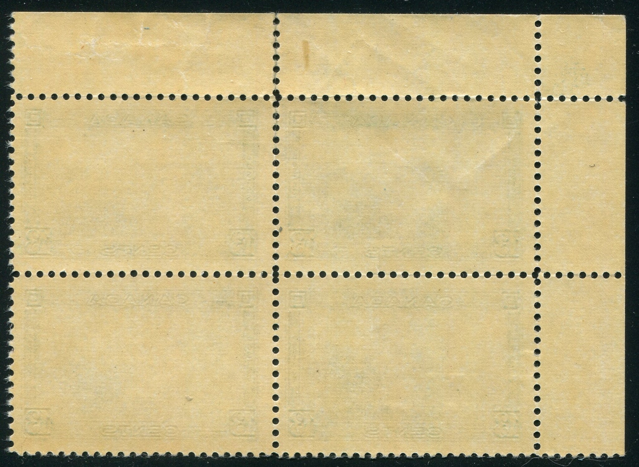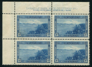 DESCRIPTION: 13c deep blue, plate block, plate 1, UL. NH. *Wrinkles in top margin*.