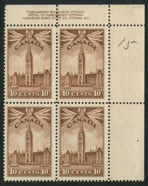 DESCRIPTION: 10c brown, plate block, plate 1, UR. LH in selvedge, stamps NH.