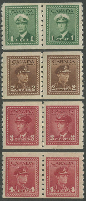 DESCRIPTION: King George VI War Issue coil pairs; 1c green, 2c brown, 3c dark carmine, 4c dark carmine. LH.