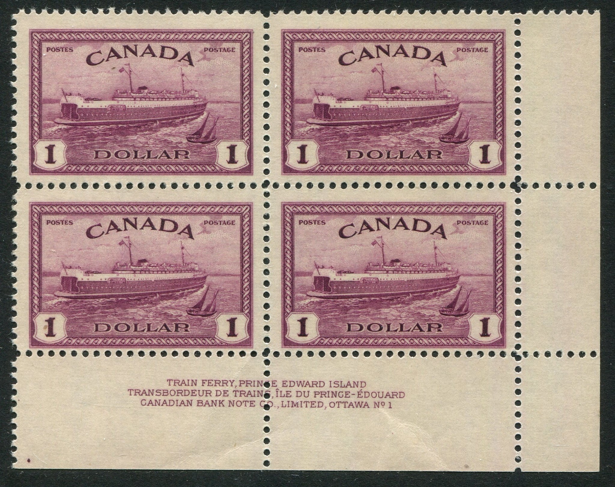 DESCRIPTION: $1 red violet, plate block, plate 1, LR. 2 LH, 2 NH.