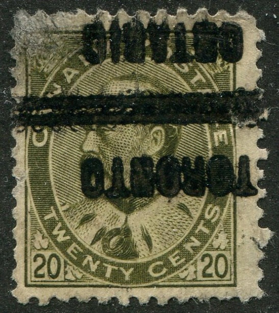 DESCRIPTION: 20c olive green, invert. *Scrape at upper left*.