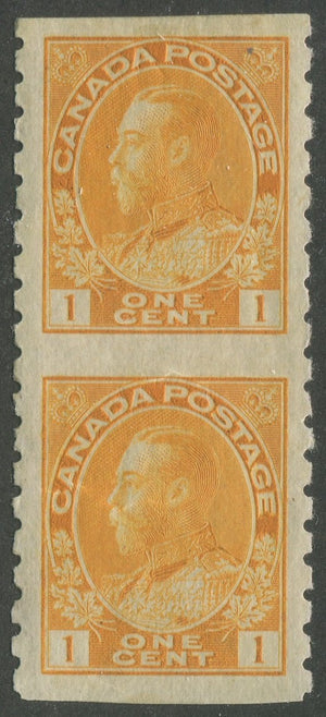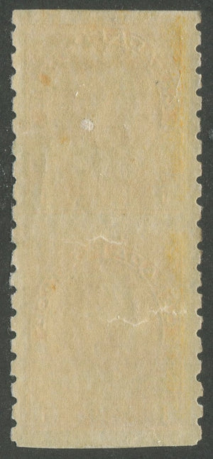 DESCRIPTION: 1c yellow, dry printing, Die II, vertical pair, imperf horizontally. LH.