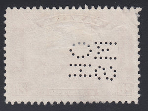 DESCRIPTION: 20c Grain Exhibition, 5-hole OHMS, position 'F'. Very rare. Corner creases.