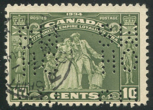 DESCRIPTION: 10c Loyalists, 5-hole OHMS, position 'C X', missing pin in "S" variety. Registered cancel. Unreported double punch, with the 2nd punch not showing the missing pin in "S" variety. A unique OHMS showpiece!