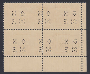 DESCRIPTION: 20c Fort Garry, 4-hole OHMS, position 'A', LH. Most rare OHMS block.
