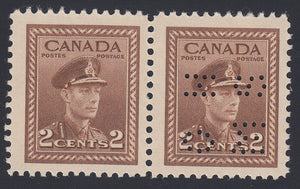 DESCRIPTION:2c brown, 4-hole OHMS, position 'E Z'. NH. Horizontal pair, 1 with perforations, 1 without. Scarce.