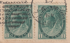 DESCRIPTION: 'Ingersoll, ONT' (JY 9, 03). Both stamps showing major re-entries, especially strong on the right stamp. Neat item for the specialist.