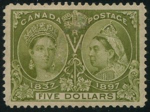 DESCRIPTION: $5 olive green. LH. Superb appearance. *Small surface scuff on crown*.