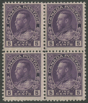 DESCRIPTION: 5c violet, thin paper, block of 4. 2 LH, 2 NH.