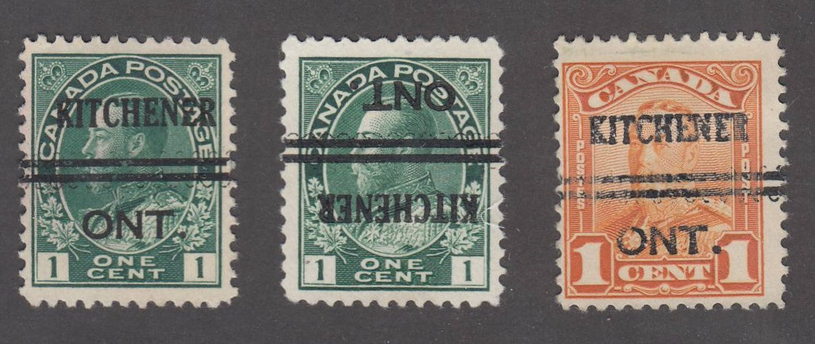 DESCRIPTION: 1c green. 1c green, inverted. 1c orange.