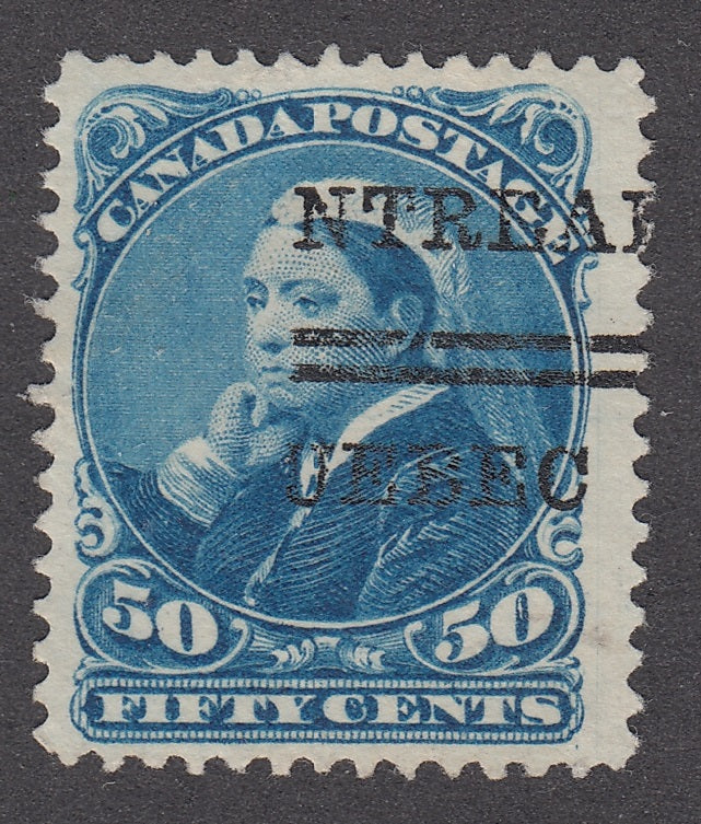 DESCRIPTION: 50c blue. Missing 'MO' and 'Q'.