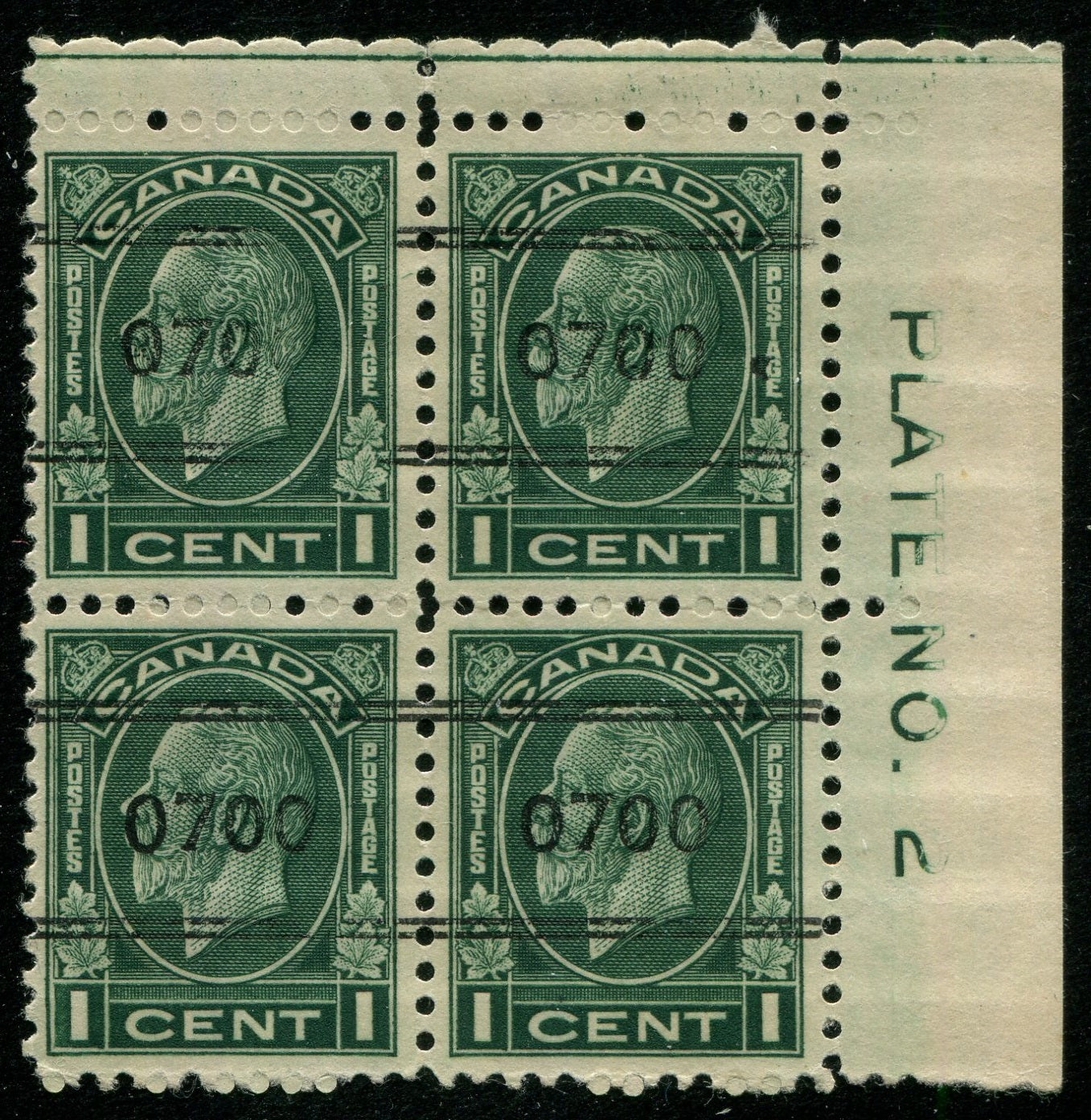 DESCRIPTION: 1c green, plate block (Pl. 2), upper left stamp missing "0". OG, LH in margin only, stamps NH.