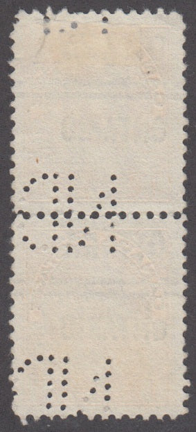 DESCRIPTION: 1c yellow, Die II, pair. Perfin #N3. A rare pair. *tiny sealed perfin tear @ top