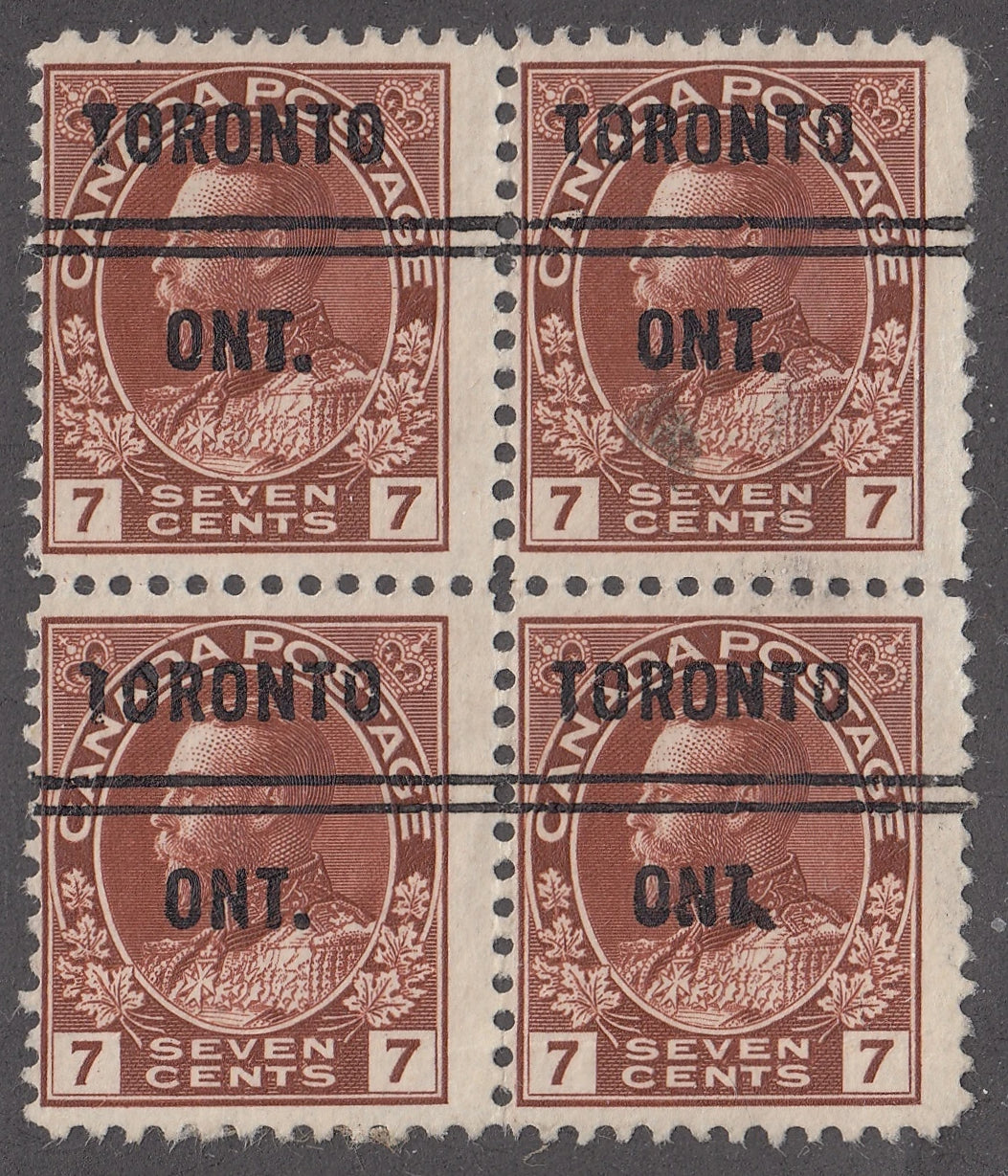 DESCRIPTION: 7c red brown. Line mark in 'V' of SEVEN (UL stamp).