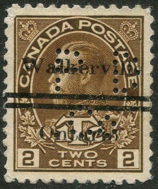DESCRIPTION: 2c & 1c brown. Perfin #P7, PD/Co.